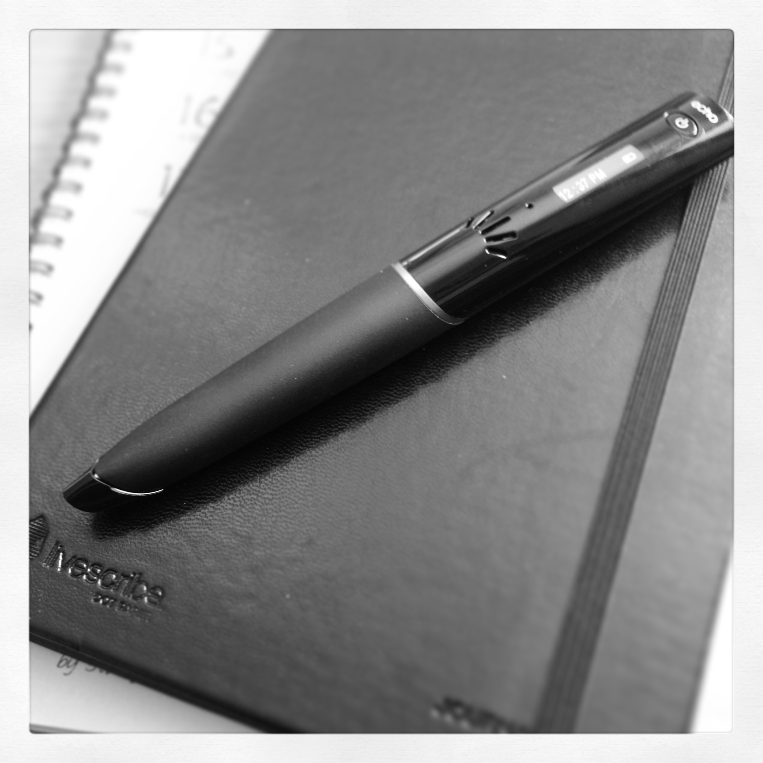 I’ve been recording interviews on my LiveScribe (it is a pen with a audio recorder built in, amongst other James Bond-style features – pictured above). My hope was that the pen would be far less invasive than a conventional recording device plonked on the desk, I hoped it would be almost an “invisible recorder”. Without delving into a full review, it has been successful to a point, though the LiveScribe has a few frustrating irks such as a tendency to pick up the sound of the pen nib making contact with the page. I also had to angle the pen towards the speaker, making for some artificial holding positions and postures.