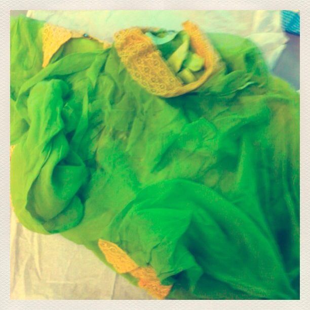 This brings me on to what I have decided to call the ‘Tinkerbell’ dress (pictured above). The name comes from the fact that it is A) green and B) falling into a state of fairy-like shredded decay. It is an item that inhabits a state of limbo, being at once inside a museum but not part of the museum’s collection.